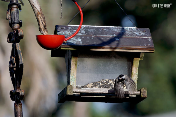 Carolina Chickadees have been hard to capture because they come, get their grub and leave. Quick little things. I barely clicked my shutter before this one did a “grab and go”.