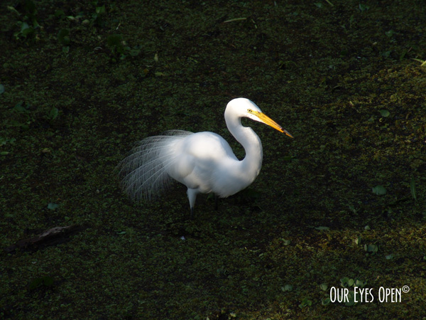 Their plumage flares in a beautiful array which caused The Snowy Egret to be near extinction in the early part of the twentieth century. Wealthy people paid big bucks to adorn their hats with the beautiful feathers.