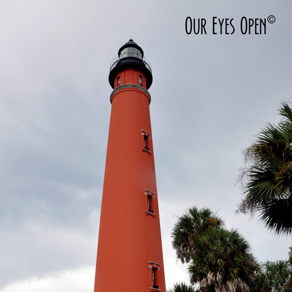 Today, I present to you the Ponce de Leon Lighthouse at the Ponce Inlet near New Smyrna Beach, Florida between St. Augustine and Cape Canaveral. This cylinder lighthouse is the tallest in Florida at 175 feet high and the second tallest in the United States behind the Cape Hatteras Lighthouse in North Carolina. It is equipped with a Third Order Fresnel lens and shines out 17 nautical miles (32 kilometers or 20 miles). For a small fee, visitors are able to climb to the top of this lighthouse and explore the museum that houses the keepers dwellings and Lens Exhibit building.