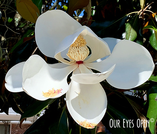 We used to have them all over when we lived in Texas. Here, in Indiana, we have a very different type of magnolia tree. It blooms in early spring for a very short period of time and then it is done until the following year. How I miss my Texas magnolias! πŸ˜”