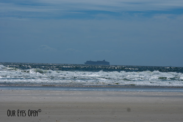 Jacksonville has been one of the ports to allow cruise lines to dock their ships in our berths and anchor them offshore during the shutdown. There was another one anchored way offshore behind this one. It was quite hazy at times this morning so I couldn’t make out which cruise line this was.