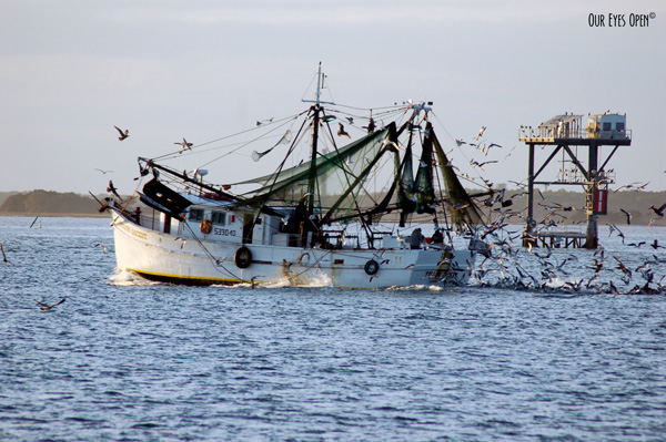 Shrimp boat in the St. Mary’s River at Fort Clinch State Park in Fernandina, Florida. Seagulls and Pelicans were everywhere!