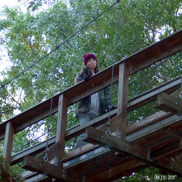 While moving archive photos this week in an effort to save my old pics from being destroyed by a soon “dying” external hard drive, I found this treasure. This was my daughter about 14 years ago while on a hike. Kaela was crossing the bridge and her rosy cheeks were a telltale sign as to it being cold. Thought it was perfect for the “Up” Square since I was looking up at her as she crossed the bridge in the trees.
