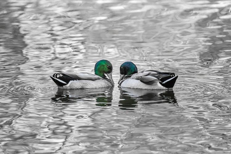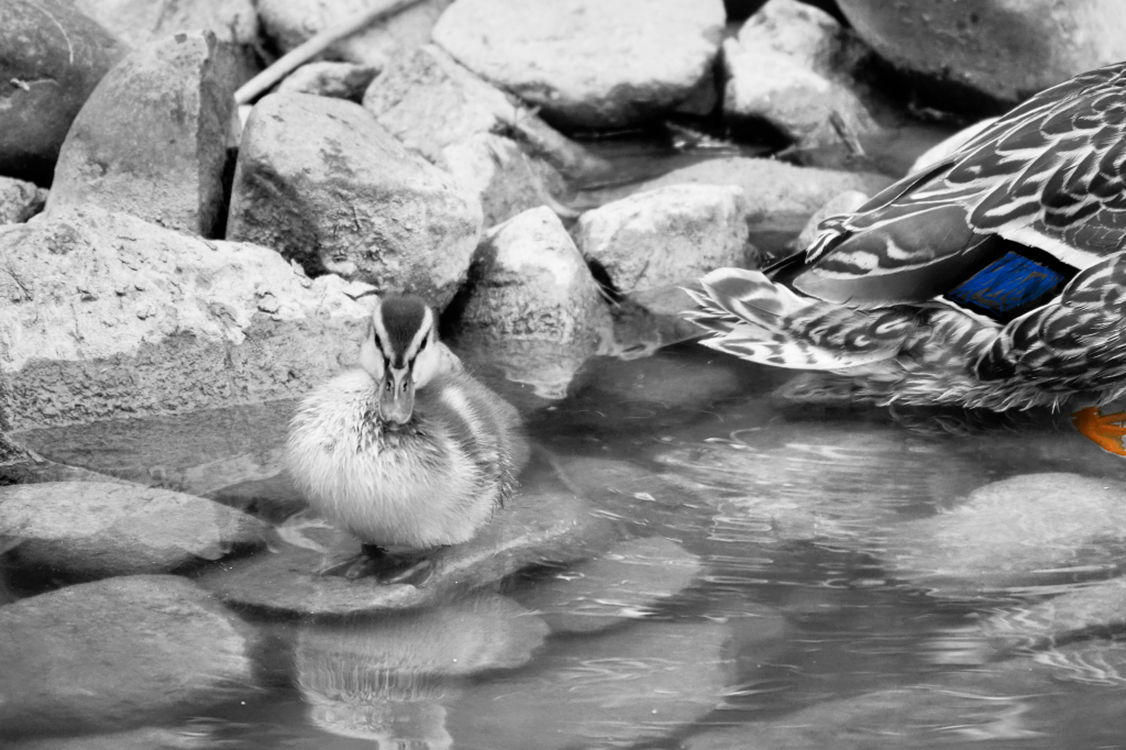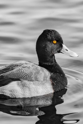 I love the black & whites with splashes of color. Especially the duck with the orange eye.